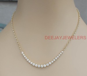 Natural 2.48ct Diamond Half Tennis Necklace 14k Yellow Gold Chain USA Made