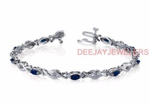 Natural 2.10ct Sapphire Diamond Bracelet 14k White Gold