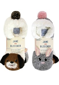 Jane Bleecker women 2 pairs Critter Socks, bunny-hound/NWT