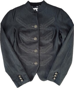 CAbi Womens Fitted Blazer Size 8 Jacket Military Embroidered Gray Brass Buttons