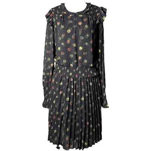 Scotch & Soda Smocked Ruffle Printed Polka Dot Midi Long Sleeve Dress sz L