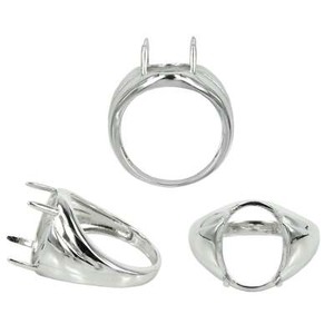 Ring with Oval Prongs Mounting in Sterling Silver 10x12mm