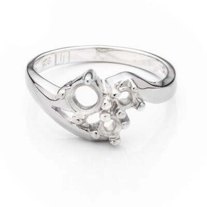 Rose Cross-Over Ring Pearl Setting with Round Cup & Peg Mounting in Sterling