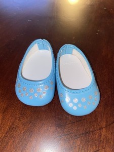American Girl Doll Blue Shoes With Silver Glitter Dots Truly Me Meet Flats 18”
