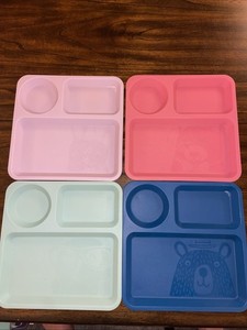SET OF 4 PILLOWFORT COLORFUL PLASTIC DIVIDED CHILDREN FOOD TRAYS - PICNIC LUNCH