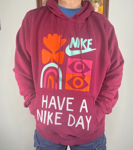 Nike Hoodie Sweatshirt Top Men's XL Maroon "Have A Nike Day" Logo Graphic Casual