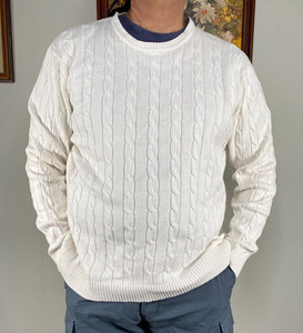 Club Room Cable Knit Sweater Top Men's Large Crew Neck White Casual 100% Cotton