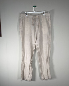 Perry Ellis 100% Linen Chino Pants Men's 36 Mid Rise Off White Casual