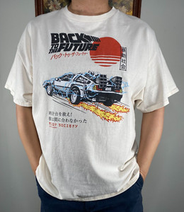 Riot Society Back to the Future T-Shirt Top Men's XL White Japanese Casual USA