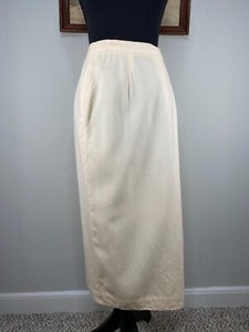 Vintage Rena Rowan Saville 100% Pure Wool Midi Skirt Women's 10 Cream USA VTG