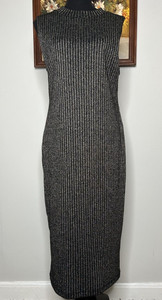 Candalite Maxi Pencil Dress Women's XL Crew Neck Black Gold Metallic Lined Party