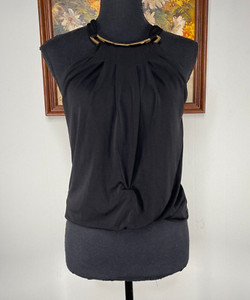 Michael Kors Pleated Halter Blouse Top Women's Medium Black Gold Casual