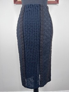 Rebecca Taylor Lace Crochet Pencil Skirt Women's 0 Knee Length Black Blue