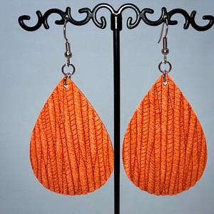 Orange Faux Leather Textured Teardrop Lightweight Boho Dangle 3 1/8" Earrings!