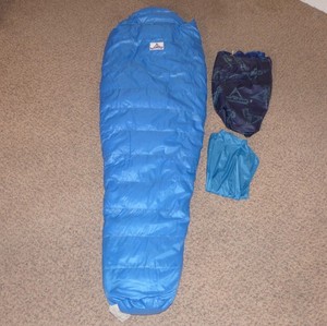 Vintage Caribou Mountaineering 0° Blue Down Mummy RH Zip Sleeping Bag 28" x 86"
