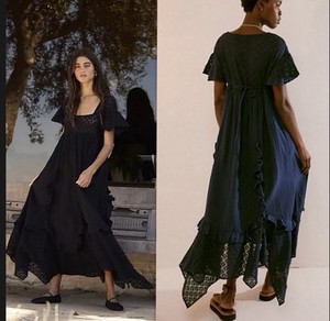Free People Bring the Romance Handkerchief Hem Maxi Dress Navy Blazer Size M