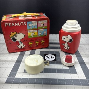 Vintage Peanuts Charlie Brown Snoopy Lunchbox 1965 Red Metal W/ Thermos RUST