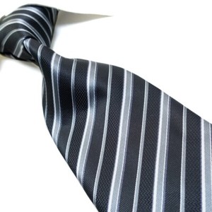 Men's Extra Long Tie Polyester Microfiber Woven Black/Silve Striped Necktie 63"