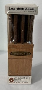 Regent & Sheffield 6 Piece Steak Knife Set w/ Genuine Mahogany Block Vintage