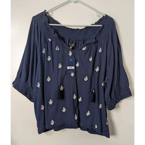 Lucky Brand Tassel Tie Neck Pullover Short Elastic Sleeve Top Size XL NEW 24" L