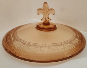 Vintage Fostoria Elegant Glass Amber Candy Dish Lid with Fleur de Lis Finial