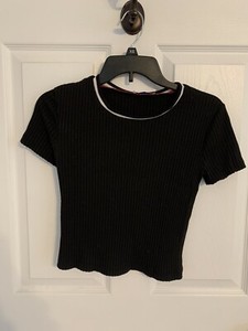 Women's Zara Ribbed T-Shirt Size S Black