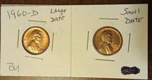 2 Coin Set 1960-D 1C BU Lincoln Cents Small Date And Large Date Varieties