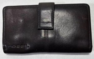 Fossil Wallet Brown Leather Snap Close Checkbook Holder & Credit Card Organizer