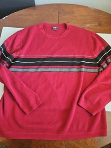 Vintage Eddie Bauer Sweater Mens XXL Red 100% Cotton Striped Pullover Casual