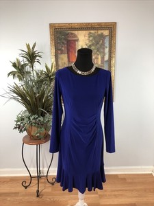 Lauren Ralph Lauren Sheath Peplum Flounce Purple Dress Womens Size 6 Long Sleeve