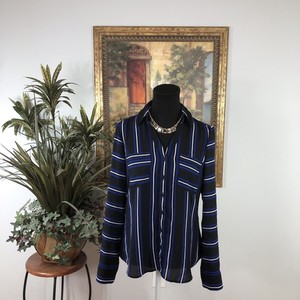 Express Portofino Shirt Women SP Black White Stripe Button Front Long Sleeve Top