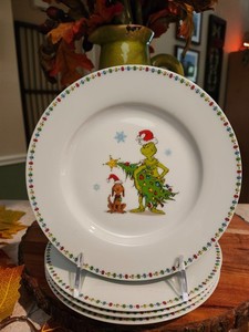DR.SEUSS HOW THE GRINCH STOLE CHRISTMAS CERAMIC DINNER PLATES SET OF 4 NEW 2025