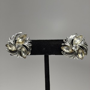 Vintage STAR Silvertone Marquise Rhinestone Screw Back Earrings Estate
