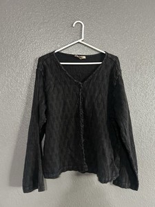Flax Womens Linen CottonButton Down Shirt Top Long Sleeve Large Gray