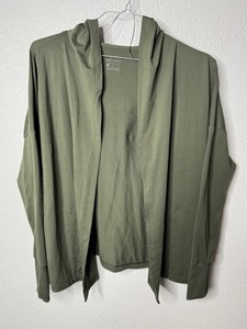 Womens Size L Nike Yoga Dri Fit Open Hooded Cardigan Shawl DJ0793-325 Olive