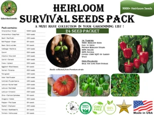 Heirloom Survival Kit 9000+ seeds, 24 varieties pack, 100% organic, Grown in USA