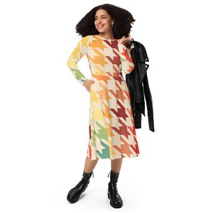 Houndstooth in Neon print long sleeve midi dress