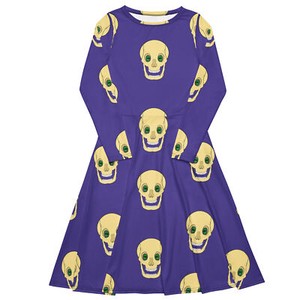 Spooky Skull- Purple print long sleeve midi dress