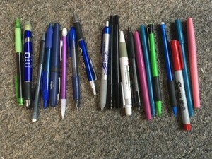 Hats, Barbies, office supplies, vintage items.