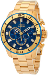 NEW Invicta Men's Quartz Golden Stainless Steel Strap Blue Dial 22587 Watch