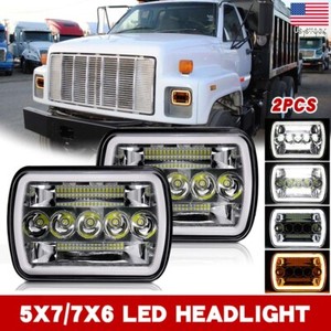 Pair 5X7" 7x6" LED Headlight Hi-Lo Beam Halo DRL for Chevrolet C6500 C7500 C8500