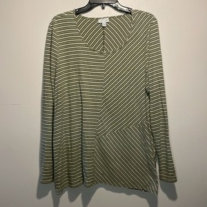 J. Jill- Tunic Top Cream & Green Striped Long Sleeve Basic Shirt- Size XL