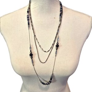 Necklace Layered Silver Blue Gray Beads 26" Fashion Adjustable SKU 2288
