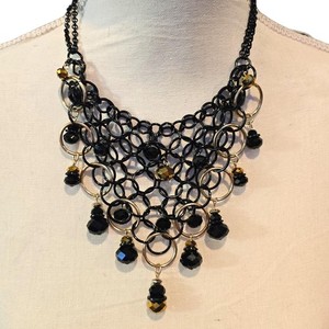 Necklace Black Statement Bib Chainmail Beaded Dangle Faceted Beads SKU2488
