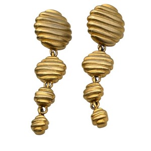 Pierced Earrings Ribbed Design Drop Flattened Dome Bead Gold Tone SKU 2484