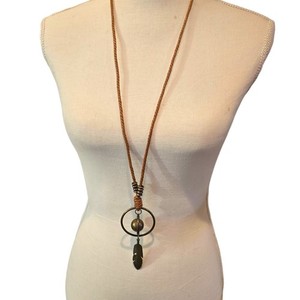 Necklace Boho Corded Brass Tone Pendant Vintage Style 32" Bohemian SKU2358
