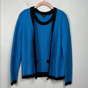 Talbots Blue Black Trim Tank & Cardigan Sweater Set Small Petite