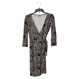Ann Taylor Wrap Dress Women's Size 0P Brown Bamboo Print 3/4 Sleeve Stretch Work