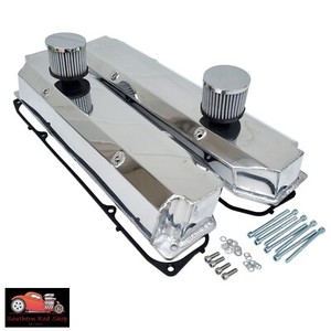 Small Block Chevy Polished Aluminum Fabricated Valve Covers SBC 350 400 Breather