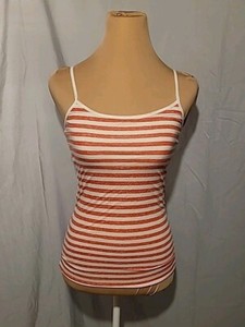 Aeropostale Favorite Cami Top Small White Orange Striped Built-In Bra